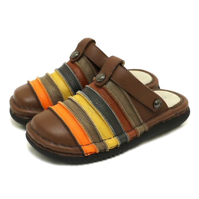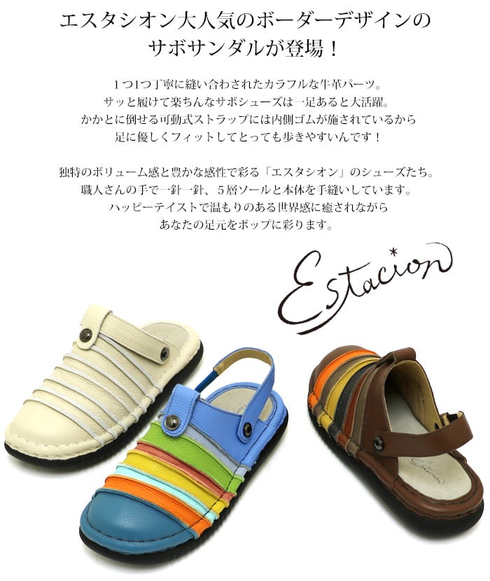 TME807【メンズ】Estacion~エスタシオン~・ボーダーデザイン本革2wayサンダル