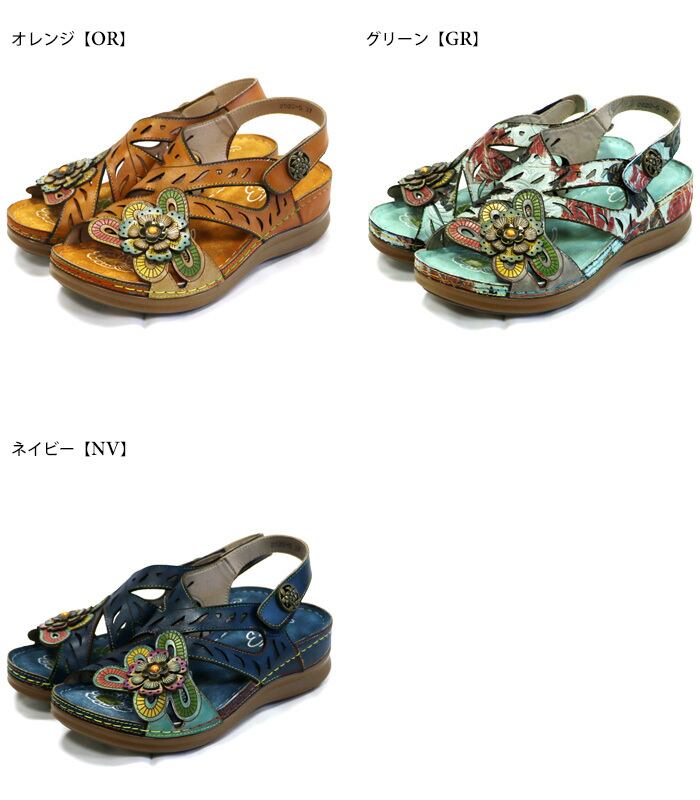 サンダル.ミュール.エスタシオン.靴.レディース.estacion.本革.ブランド.軽量.歩きやすい.フラワー.お花.エスニック調.レザー.厚底.ローヒール.新作.SS.S.M.L.LL.22.0cm.22.5cm.23.0cm.23.5cm.24.0cm.24.5cm
