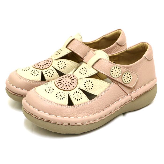 MSE236【レディース】Estacion~エスタシオン~・フラワーパンチングモチーフ本革ストラップパンプス