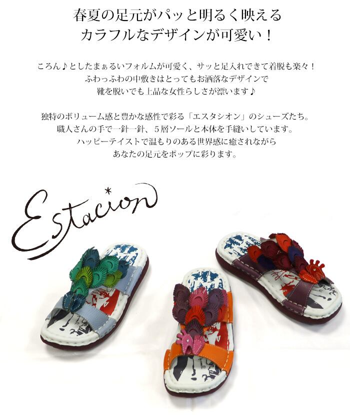 サンダル.エスタシオン.靴.レディース.estacion.本革.ブランド.軽量.カジュアル.疲れにくい.歩きやすい.動物.アニマル.レザー.フラット.ローヒール.SS.S.M.L.LL.22.0cm.22.5cm.23.0cm.23.5cm.24.0cm.24.5cm.25.0cm