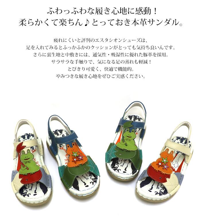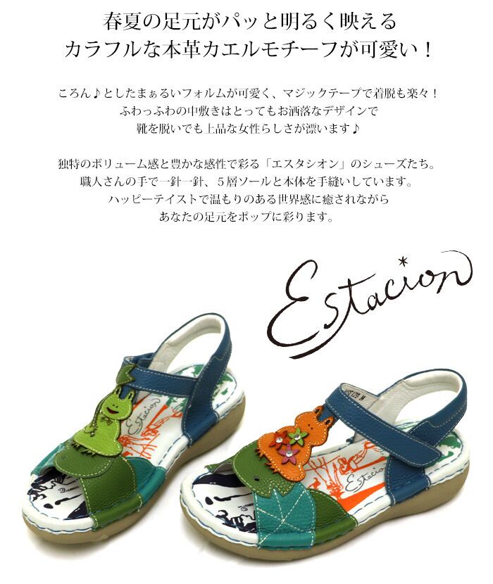 サンダル.エスタシオン.靴.レディース.estacion.ストラップ.本革.ブランド.軽量.カジュアル.疲れにくい.歩きやすい.フラット.カエル.モチーフ.レザー.厚底.ローヒール.新作.SS.S.M.L.LL.22.0cm.22.5cm.23.0cm.23.5cm.24.0cm.24.5cm.25.0cm