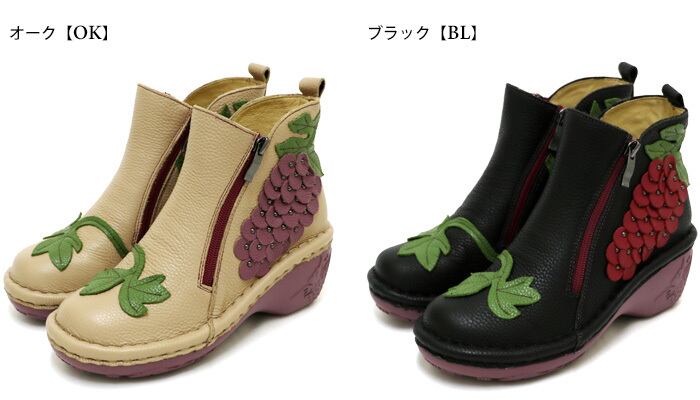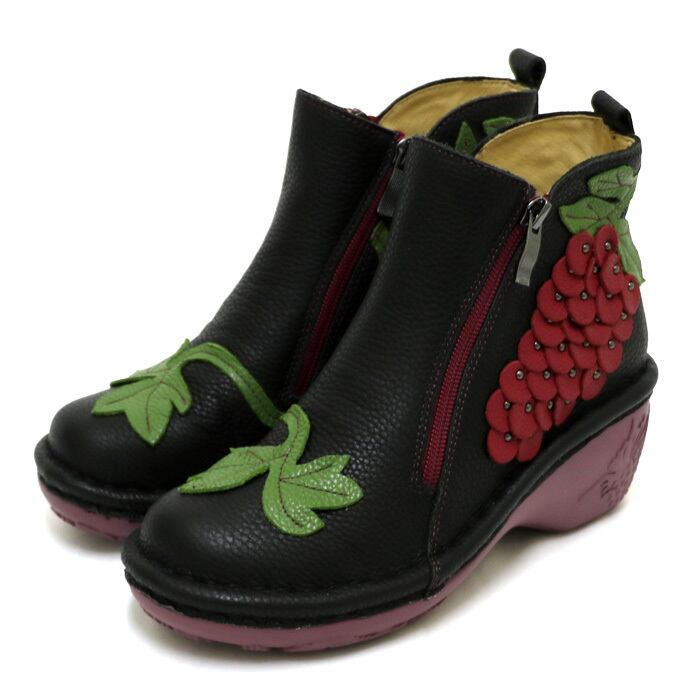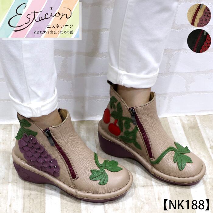NK188【レディース】Estacion~エスタシオン~・ぶどうモチーフ本革ショートブーツ