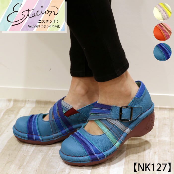 パンプス.エスタシオン.靴.レディース.estacion.ストラップ.本革.新作.ブランド.軽量.カジュアル.ウェッジ.歩きやすい.カラフル.レザー.厚底.ローヒール.ストラップ.SS.S.M.L.LL.22.0cm.22.5cm.23.0cm.23.5cm.24.0cm.24.5cm.25.0cm