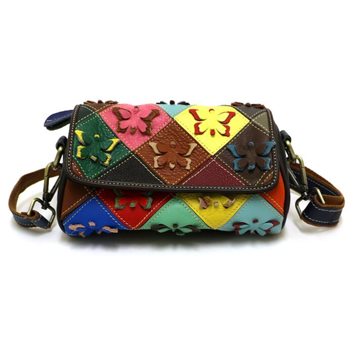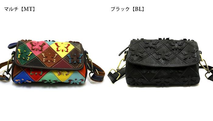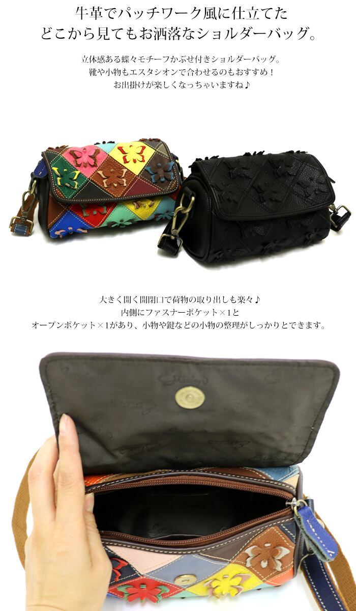 バッグ.エスタシオン.靴.レディース.estacion.本革.ブランド.ショルダーバッグ.蝶々.カラフル.マルチ.ブラック.レザー.斜め