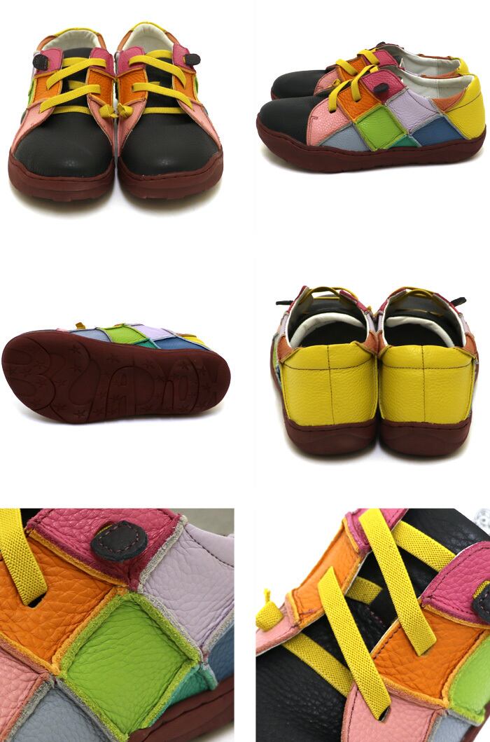 MLH2115【レディース】Estacion~エスタシオン~・パッチワークデザインレースアップ本革スニーカー