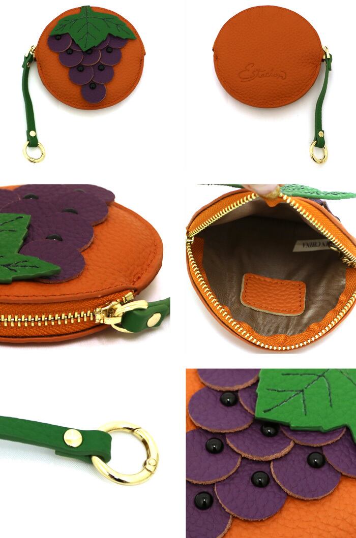 ポーチ.コインケース.小物.エスタシオン.雑貨.レディース.estacion.本革.レザー.ブランド.カジュアル.ストラップ.ミニ.カラフル.ケース.ぶどう.フルーツ