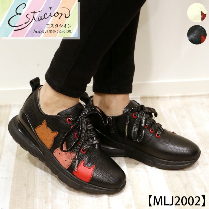 スニーカー.エスタシオン.靴.レディース.estacion.本革.ブランド.厚底.フラット.新作.疲れない.柔らかい.レザー.空気循環.ソール.カジュアル.ローヒール.ネコちゃん.ネコ.猫.SS.S.M.L.LL.22.0cm.22.5cm.23.0cm.23.5cm.24.0cm.24.5cm.25.0cm