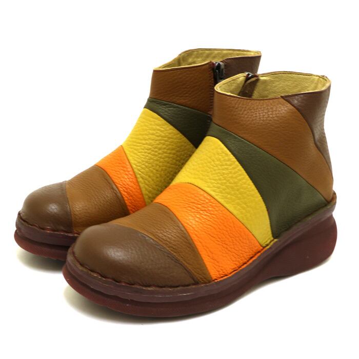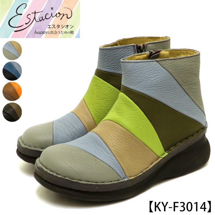 KY-F3014【レディース】Estacion~エスタシオン~・マルチカラー本革ショートブーツ