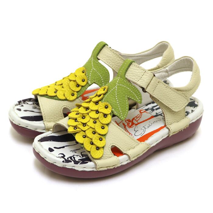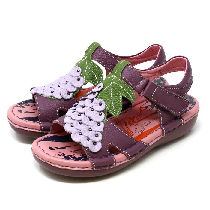 サンダル.エスタシオン.靴.レディース.estacion.本革.ブランド.軽量.コンフォート.歩きやすい.ぶどう.ストラップ.マジックテープ.レザー.ローヒール.厚底.フルーツ.SS.S.M.L.LL.22.0cm.22.5cm.23.0cm.23.5cm.24.0cm.24.5cm.25.0cm