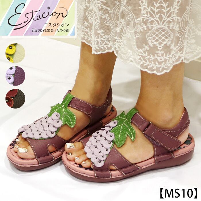 MS10【レディース/受注生産可】Estacion~エスタシオン~・ぶどうモチーフ本革サンダル