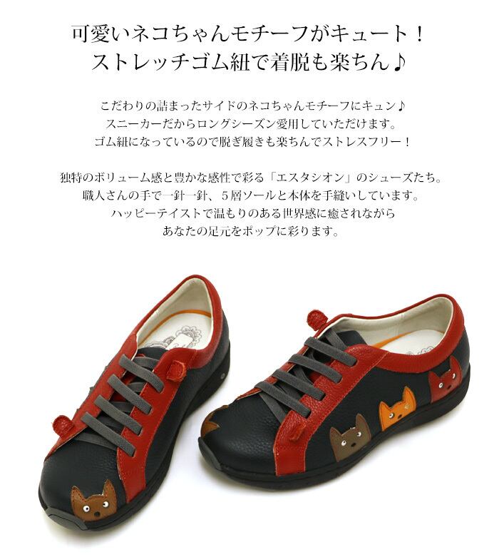 スニーカー.エスタシオン.靴.レディース.estacion.本革.ブランド.えすたしおん.厚底.新作.フラット.レースアップ.疲れない.柔らかい.エアサイクル.猫.ねこちゃん.ローヒール.カジュアル.SS.S.M.L.LL.22.0cm.22.5cm.23.0cm.23.5cm.24.0cm.24.5cm.25.0cm
