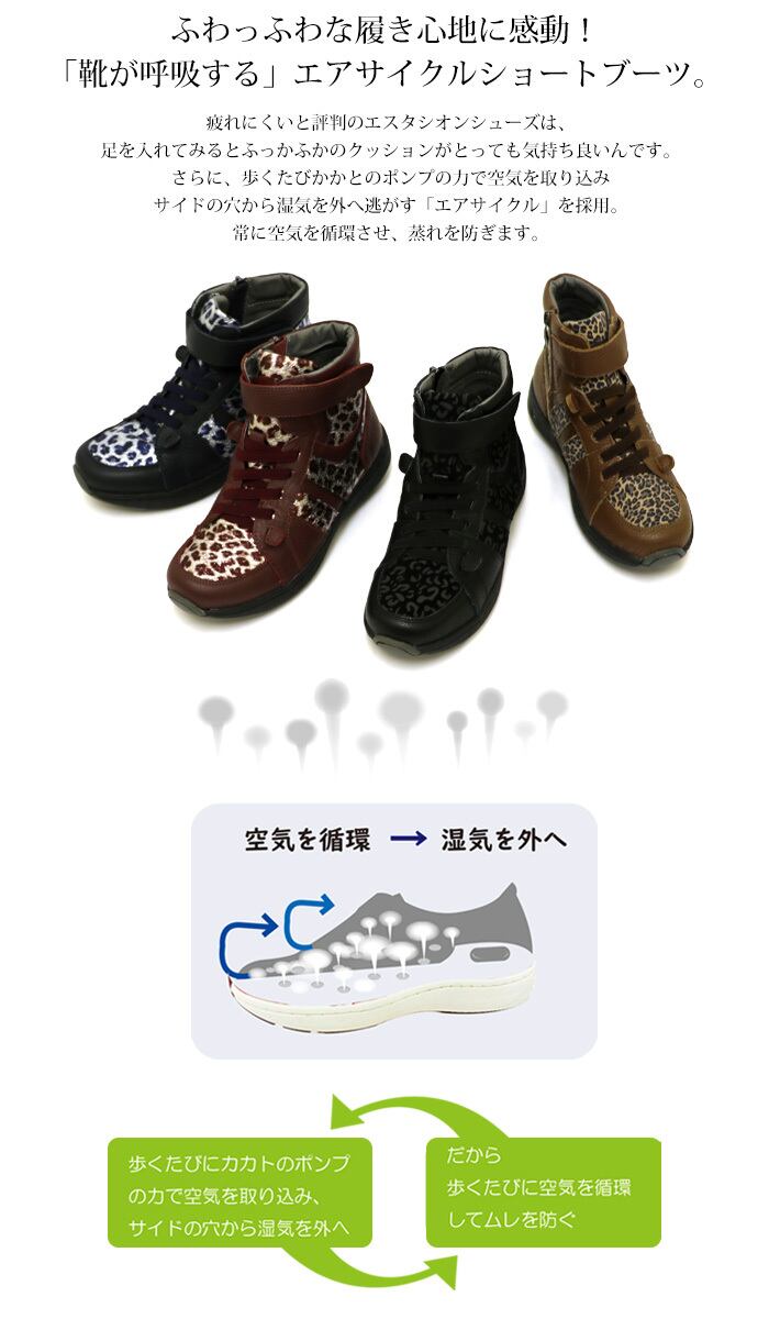 スニーカー.ブーツ.エスタシオン.靴.レディース.estacion.本革.ブランド.軽量.カジュアル.新作.コンフォート.歩きやすい.エアサイクル.ハイカット.空気循環.ソール.カジュアル.ローヒール.SS.S.M.L.LL.22.0cm.22.5cm.23.0cm.23.5cm.24.0cm.24.5cm.25.0cm
