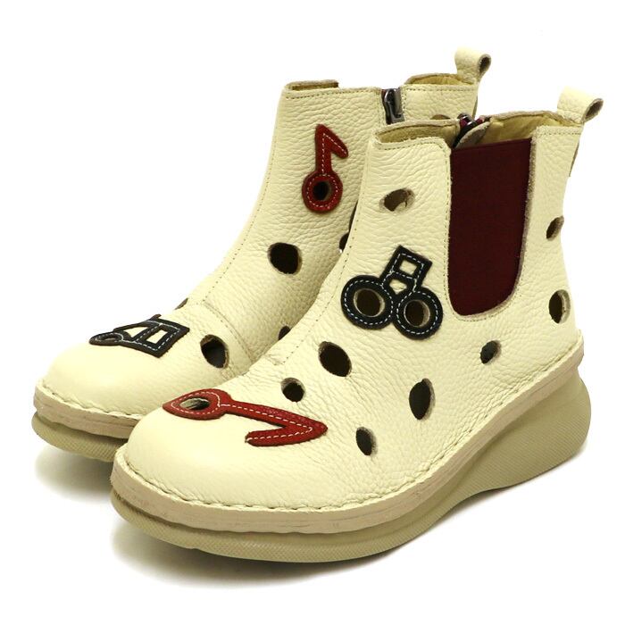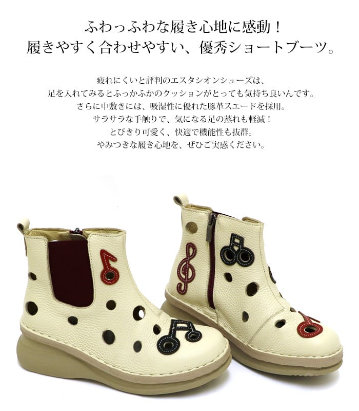 ブーツ.音符モチーフ.エスタシオン.靴.レディース.estacion.本革.ブランド.フラット.ウェッジ.疲れない.新作.柔らかい.サイドゴア.レザー.パンチング.カジュアル.厚底.ローヒール.SS.S.M.L.LL.21.5cm.22.0cm.22.5cm.23.0cm.23.5cm.24.0cm.24.5cm.25.0cm