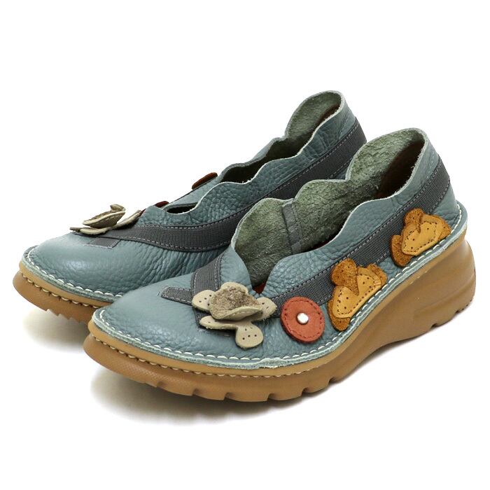 ES0231【レディース】Estacion~エスタシオン~・日本製フラワーモチーフ本革パンプス