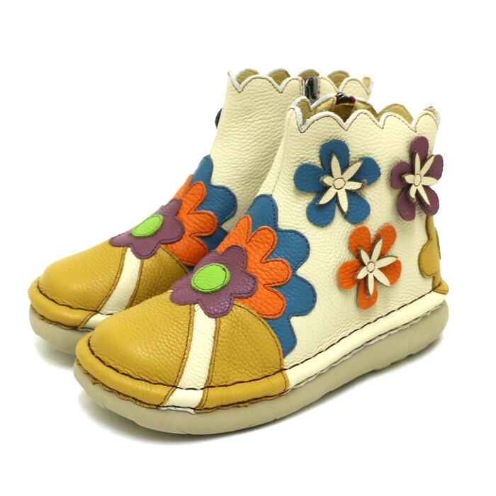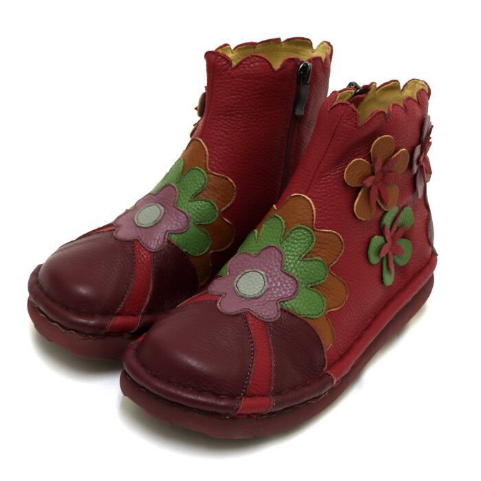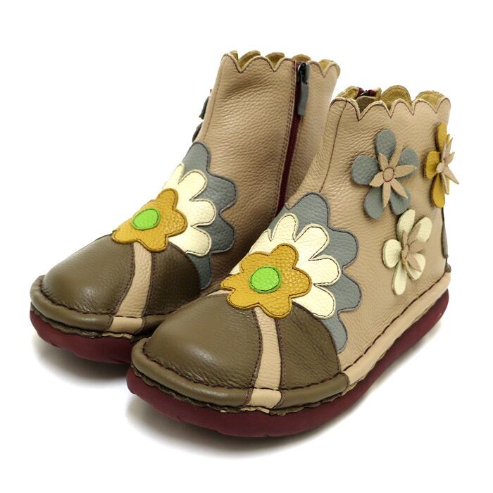 TGE479【レディース/受注生産可】Estacion~エスタシオン~・フラワーモチーフ本革ショートブーツ