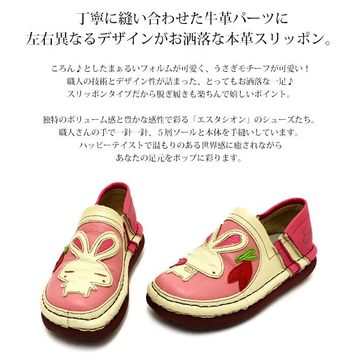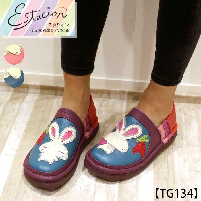 TG134【レディース/受注生産可】Estacion~エスタシオン~・うさぎモチーフ本革スリッポンシューズ
