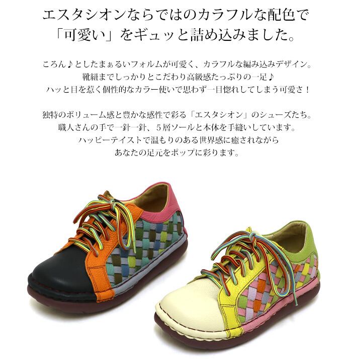 スニーカー.靴.レディース.エスタシオン.スリッポン.本革.レザー.estacion.ブランド.メッシュ.カラフル.フラット.カジュアル.軽量.歩きやすい.レースアップ.新作.編み込み.SS.S.M.L.LL.22.0cm.22.5cm.23.0cm.23.5cm.24.0cm.24.5cm.25.0cm
