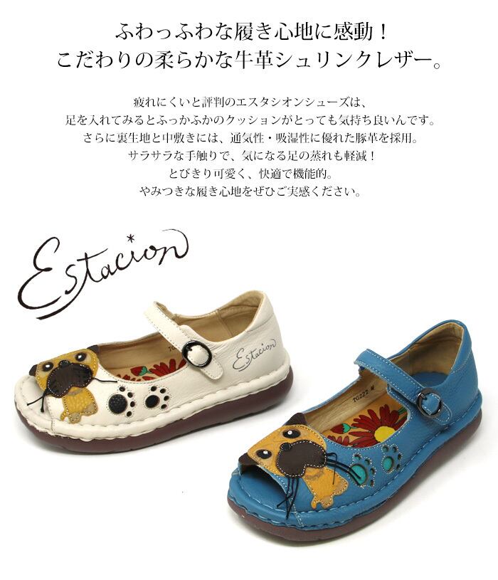 サンダル.パンプス.エスタシオン.本革.靴.レディース.estacion.オープントゥ.ブランド.犬.カジュアル.フラット.歩きやすい.柔らかい.レザー.わんちゃん.厚底.ローヒール.SS.S.M.L.22.5cm.23.0cm.23.5cm.24.0cm.24.5cm