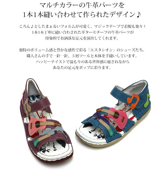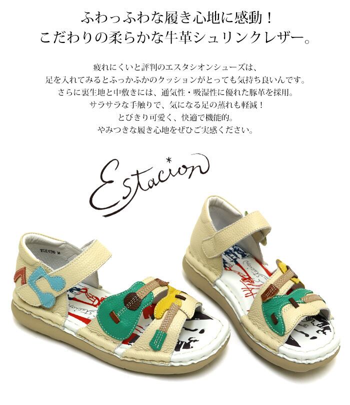TGE495【レディース/受注生産可】Estacion~エスタシオン~・ギターモチーフ本革ストラップサンダル