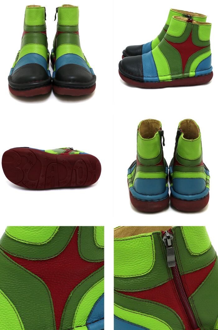 TGE467【レディース】Estacion~エスタシオン~・カラフルデザイン本革ショートブーツ