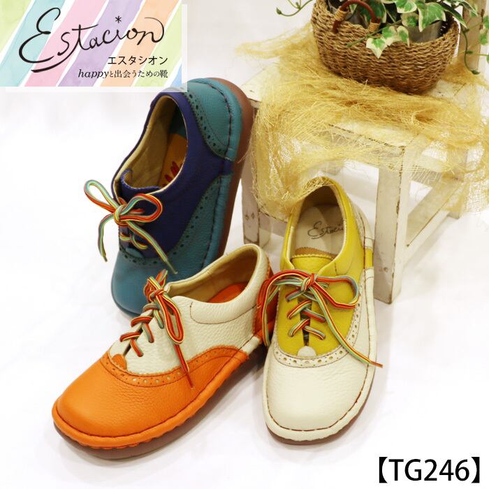カジュアルシューズ.エスタシオン.靴.レディース.estacion.本革.ブランド.レースアップ.フラット.カラフル.レザー.歩きやすい.バイカラー.カジュアル.スニーカー.SS.S.M.L.LL.22.0cm.22.5cm.23.0cm.23.5cm.24.0cm.24.5cm.25.0cm
