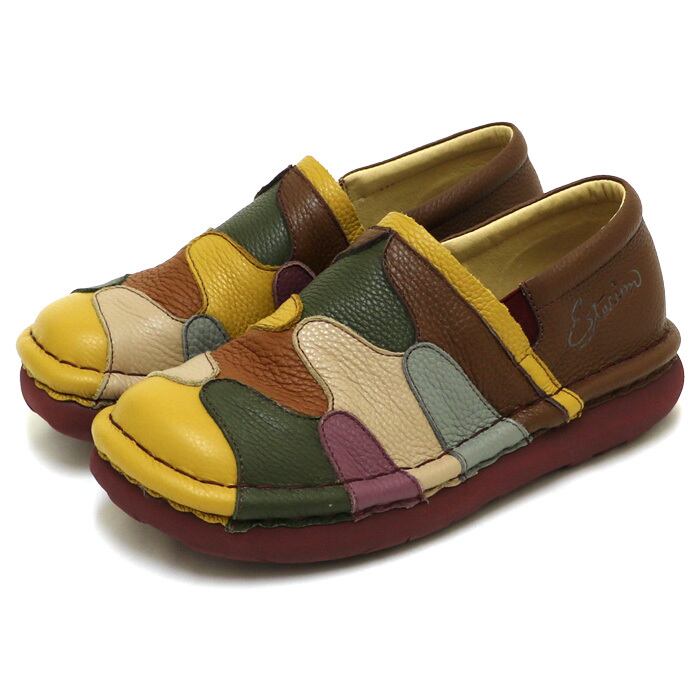 TGE477【レディース】Estacion~エスタシオン~・カラフルウェーブデザイン本革スリッポンシューズ