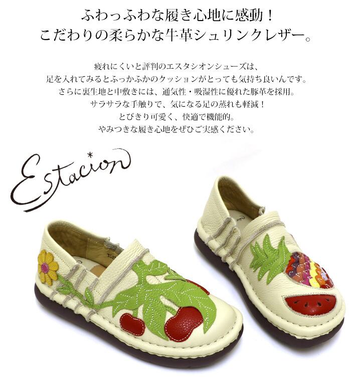 スリッポン.エスタシオン.スニーカー.靴.レディース.estacion.レザー.コンフォート.フラット.ローヒール.軽量.カラフル.フルーツ.歩きやすい.新作.カジュアル.本革.人気.SS.S.M.L.LL.22.0cm.22.5cm.23.0cm.23.5cm.24.0cm.24.5cm.25.0cm
