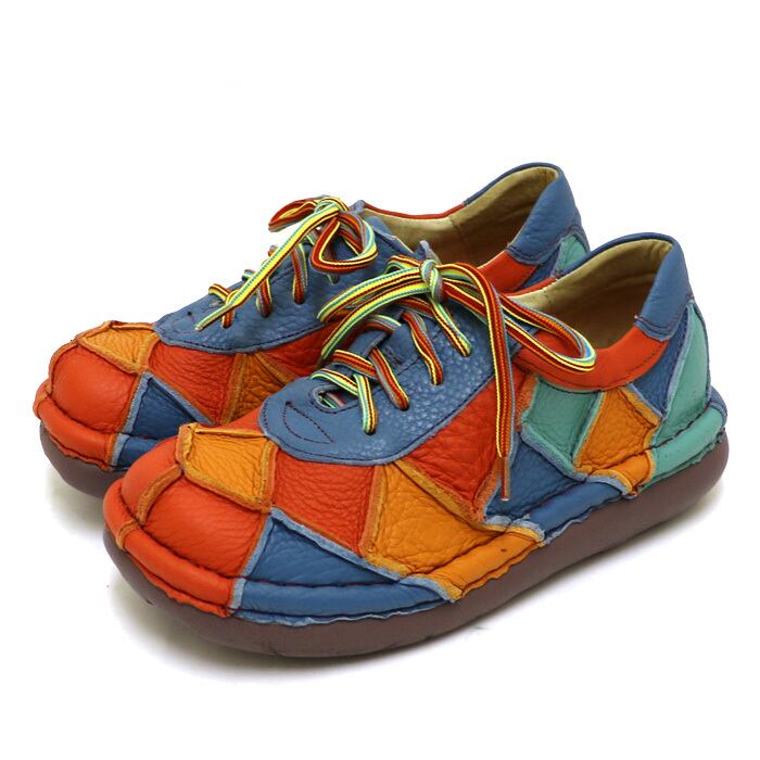 TG203【レディース/受注生産可】Estacion~エスタシオン~・パッチワーク本革レースアップシューズ