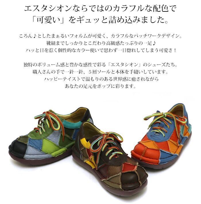 スリッポン.靴.レディース.エスタシオン.スニーカー.本革.レザー.estacion.ブランド.レースアップ.パッチワーク.新作.カラフル.フラット.カジュアル.軽量.歩きやすい.シューズ.SS.S.M.L.LL.22.0cm.22.5cm.23.0cm.23.5cm.24.0cm.24.5cm.25.0cm