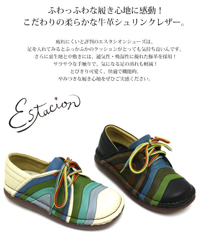 スニーカー.靴.レディース.エスタシオン.スリッポン.本革.レザー.estacion.ブランド.マルチ.カラフル.フラット.カジュアル.軽量.歩きやすい.レースアップ.新作.SS.S.M.L.LL.22.0cm.22.5cm.23.0cm.23.5cm.24.0cm.24.5cm.25.0cm