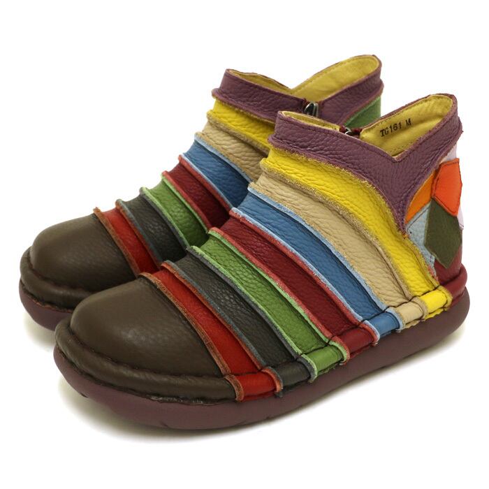 TG161【レディース/受注生産可】Estacion~エスタシオン~・本革ボーダーかかとパッチワークショートブーツ