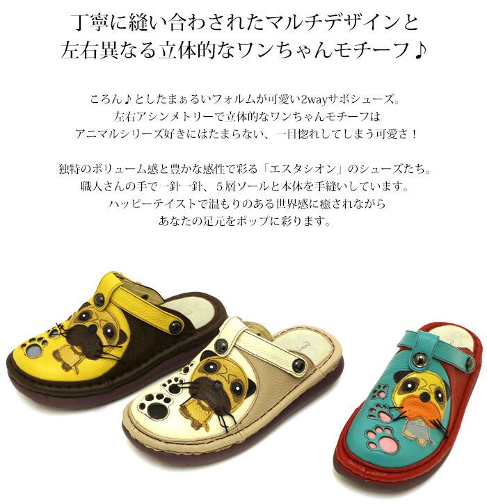 サボ.サンダル.エスタシオン.靴.レディース.estacion.ストラップ.本革.ブランド.軽量.カジュアル.疲れにくい.歩きやすい.2way.アニマル.新作.わんちゃん.レザー.SS.S.M.L.LL.22.0cm.22.5cm.23.0cm.23.5cm.24.0cm.24.5cm.25.0cm