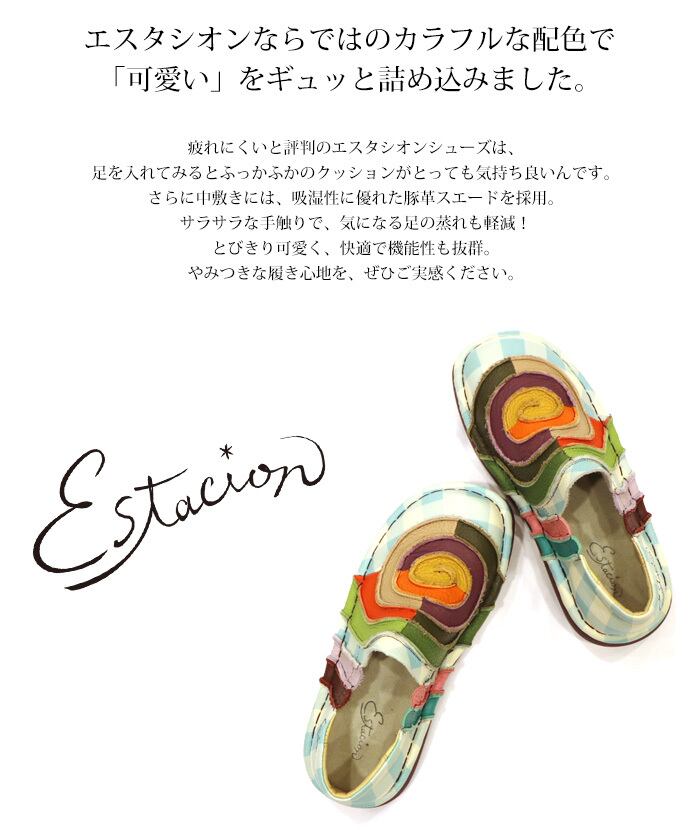 スリッポン.エスタシオン.スニーカー.靴.レディース.estacion.えすたしおん.ブランド.うずまき.カラフル.フラット.歩きやすい.チェック.レザー.厚底.ローヒール.SS.S.M.L.LL.22.0cm.22.5cm.23.0cm.23.5cm.24.0cm.24.5cm.25.0cm