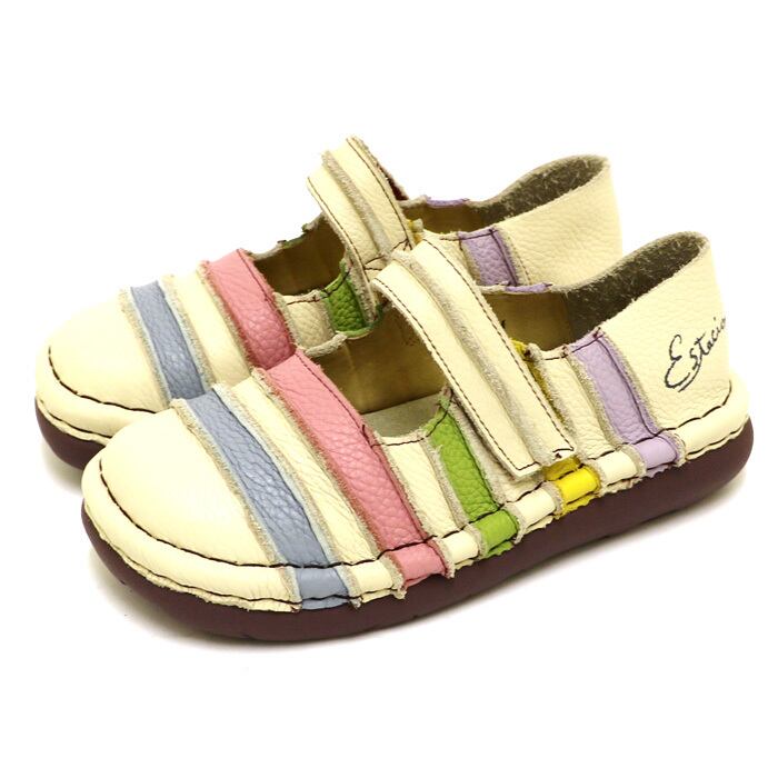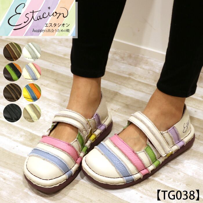 パンプス.靴.レディース.エスタシオン.本革.レザー.estacion.ブランド.ボーダー.マルチ.カラフル.フラット.カジュアル.軽量.歩きやすい.マジックテープ.SS.S.M.L.LL.22.0cm.22.5cm.23.0cm.23.5cm.24.0cm.24.5cm.25.0cm