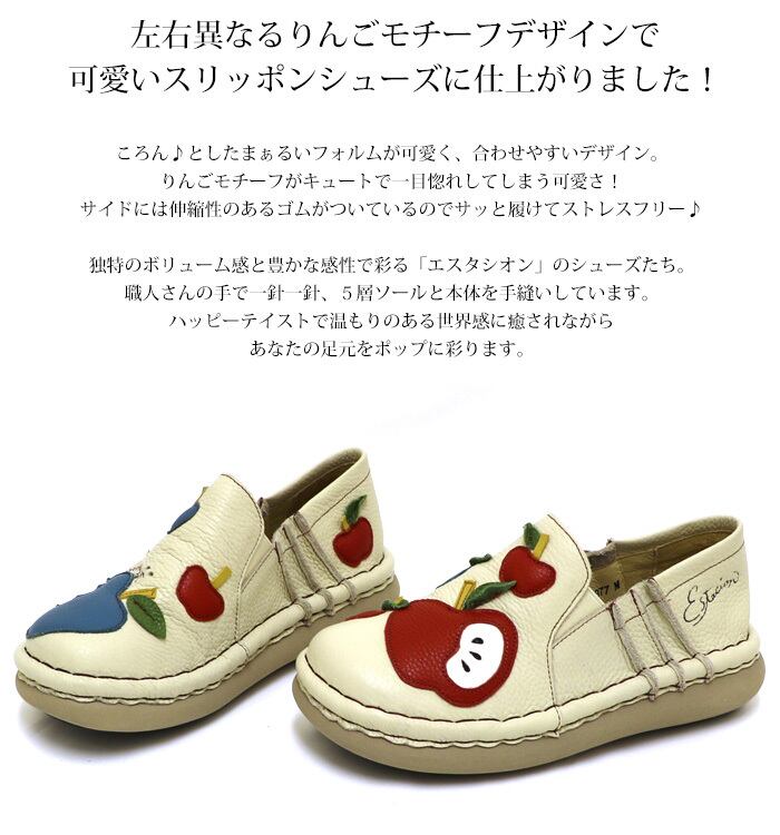スリッポン.エスタシオン.スニーカー.靴.サイドゴア.レディース.estacion.本革.えすたしおん.新作.ブランド.りんご.フルーツ.フラット.歩きやすい.厚底.シンプル.おしゃれ.SS.S.M.L.LL.22.0cm.22.5cm.23.0cm.23.5cm.24.0cm.24.5cm.25.0cm