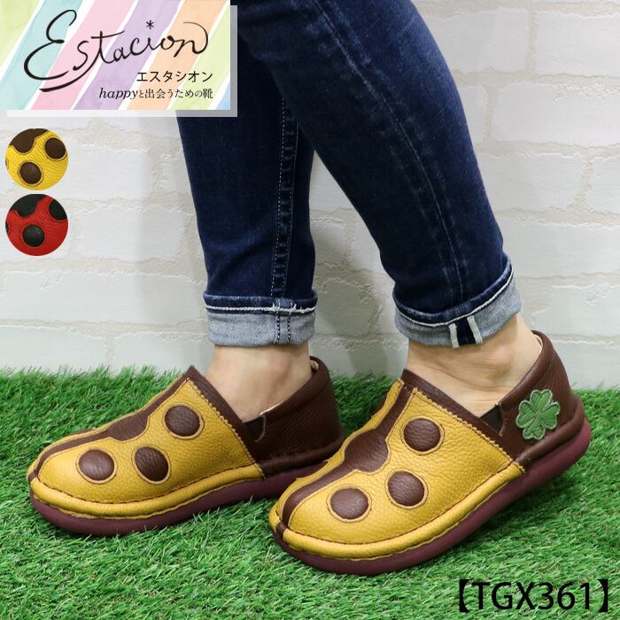 TGX361【レディース/受注生産可】Estacion~エスタシオン~・てんとう虫モチーフ本革スリッポンシューズ