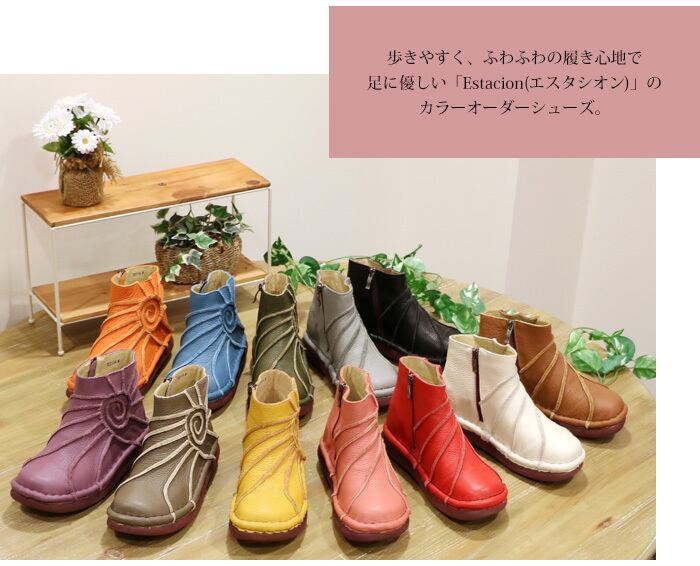 ブーツ.エスタシオン.ショートブーツ.靴.サイドゴア.レディース.estacion.本革.えすたしおん.新作.ブランド.ボーダー.カラフル.うずまき.フラット.歩きやすい.厚底.オーダーメイド.カジュアル.アンクル.SS.S.M.L.LL.22.0cm.22.5cm.23.0cm.23.5cm.24.0cm.24.5cm.25.0cm