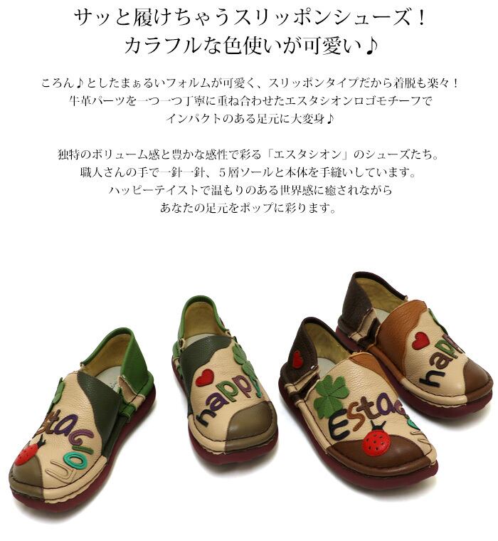 スリッポン.エスタシオン.スニーカー.靴.レディース.estacion.レザー.コンフォート.フラット.新作.ローヒール.軽量.本革.歩きやすい.花.アニマル.カジュアル.SS.S.M.L.LL.22.0cm.22.5cm.23.0cm.23.5cm.24.0cm.24.5cm.25.0cm