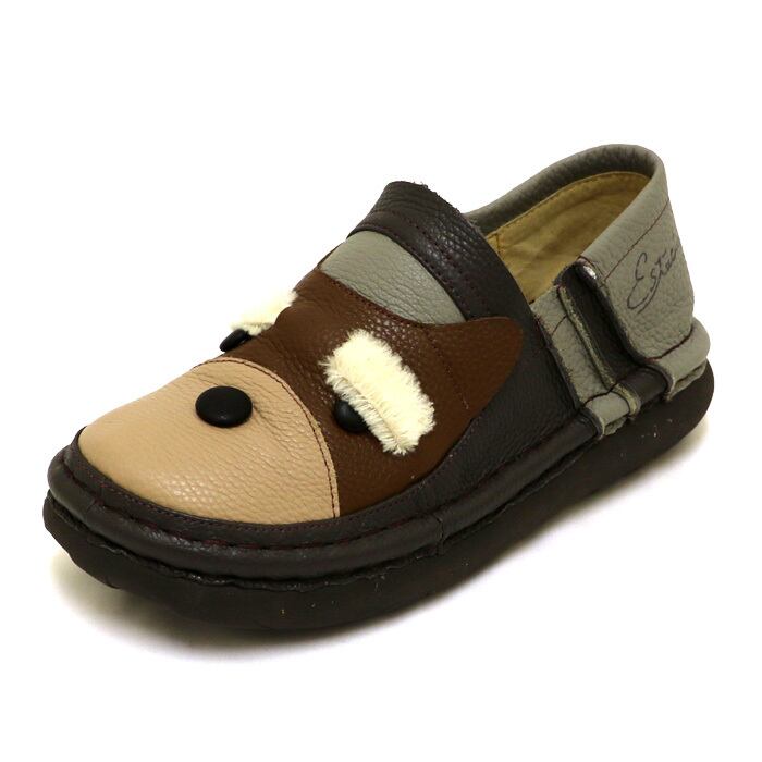 TGE396【レディース】Estacion~エスタシオン~・ワンちゃんフェイスモチーフ本革スリッポンシューズ