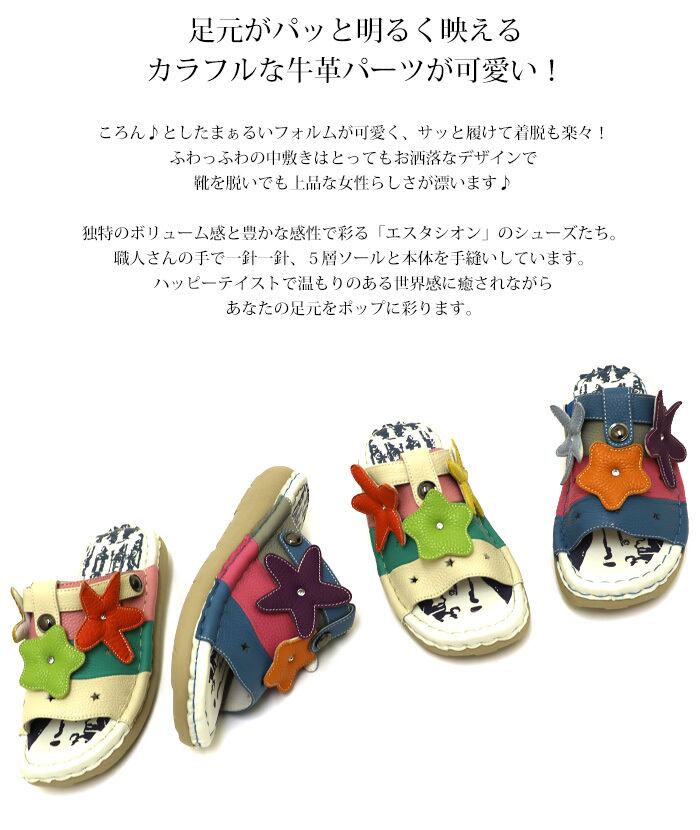 サンダル.エスタシオン.靴.レディース.estacion.本革.ブランド.軽量.カジュアル.疲れにくい.歩きやすい.夏.モチーフ.レザー.フラット.ローヒール.SS.S.M.L.LL.22.0cm.22.5cm.23.0cm.23.5cm.24.0cm.24.5cm.25.0cm