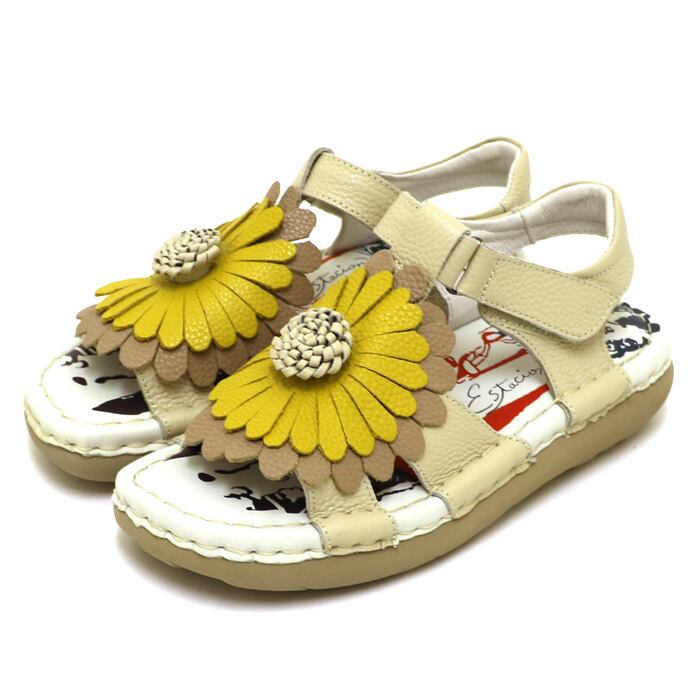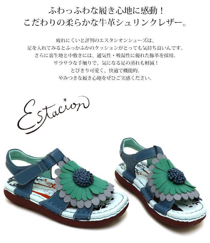 サンダル.エスタシオン.靴.レディース.estacion.本革.ブランド.軽量.カジュアル.疲れにくい.歩きやすい.花.フラワー.レザー.フラット.ローヒール.SS.S.M.L.LL.22.0cm.22.5cm.23.0cm.23.5cm.24.0cm.24.5cm.25.0cm