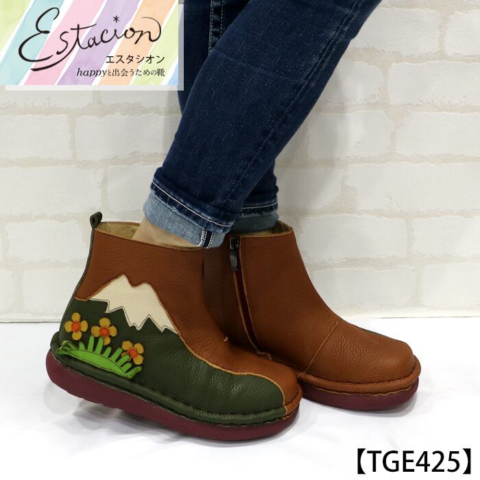 TGE425【レディース】Estacion~エスタシオン~・マウンテンモチーフ本革ショートブーツ