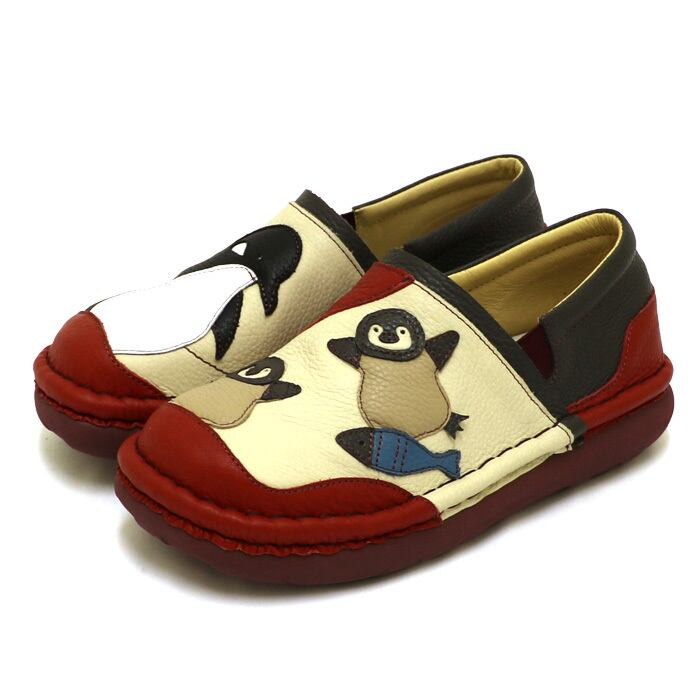 TGE417【レディース/受注生産可】Estacion~エスタシオン~・ぺんぎんモチーフ本革スリッポンシューズ