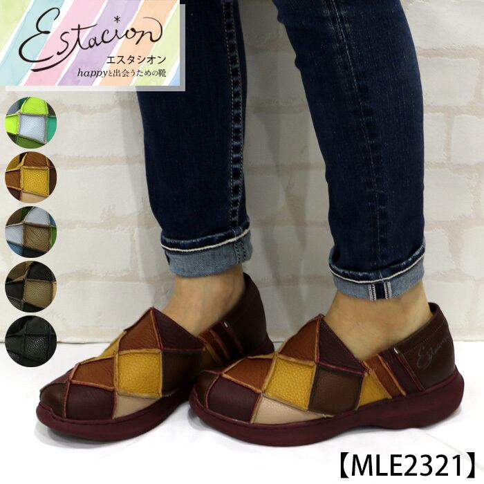MLE2321【レディース】Estacion~エスタシオン~・パッチワークエアサイクルスリッポンスニーカー