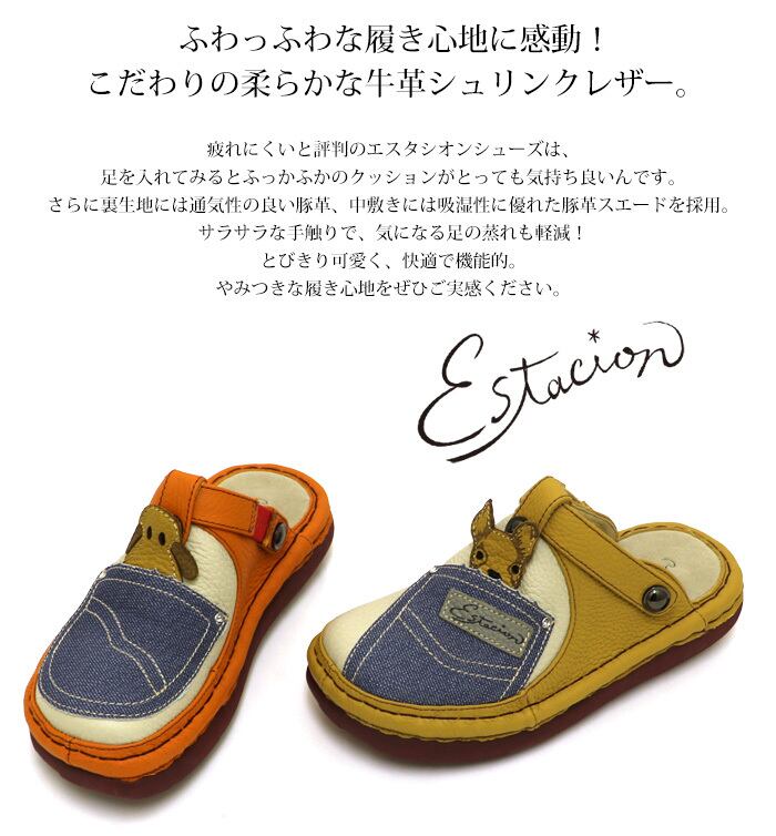 サボ.サンダル.エスタシオン.靴.レディース.estacion.本革.ブランド.軽量.カジュアル.疲れにくい.歩きやすい.2way.ネコちゃん.ワンちゃん 犬.猫.アニマル.レザー.フラット.ローヒール.SS.S.M.L.22.0cm.22.5cm.23.0cm.23.5cm.24.0cm.24.5cm