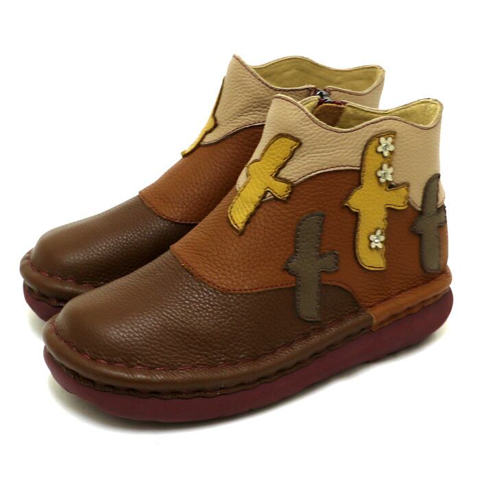 TGE542【レディース/受注生産可】Estacion~エスタシオン~・鳥モチーフ本革ショートブーツ