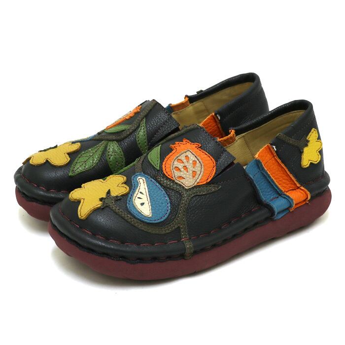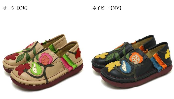 TGE543【レディース/受注生産可】Estacion~エスタシオン~・花モチーフ本革スリッポンシューズ