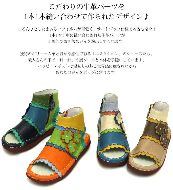 TGE559【レディース/受注生産可】Estacion~エスタシオン~・フラワーモチーフ本革ブーツサンダル