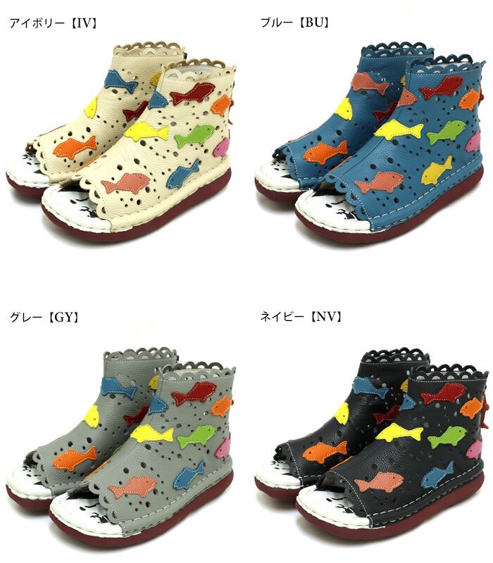 TGE555【レディース/受注生産可】Estacion~エスタシオン~・お魚モチーフ本革ブーツサンダル
