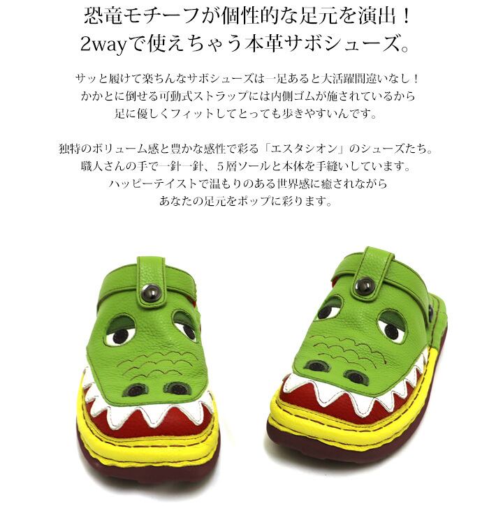 TGE558【レディース/受注生産可】Estacion~エスタシオン~・ワニモチーフ2way本革サボシューズ